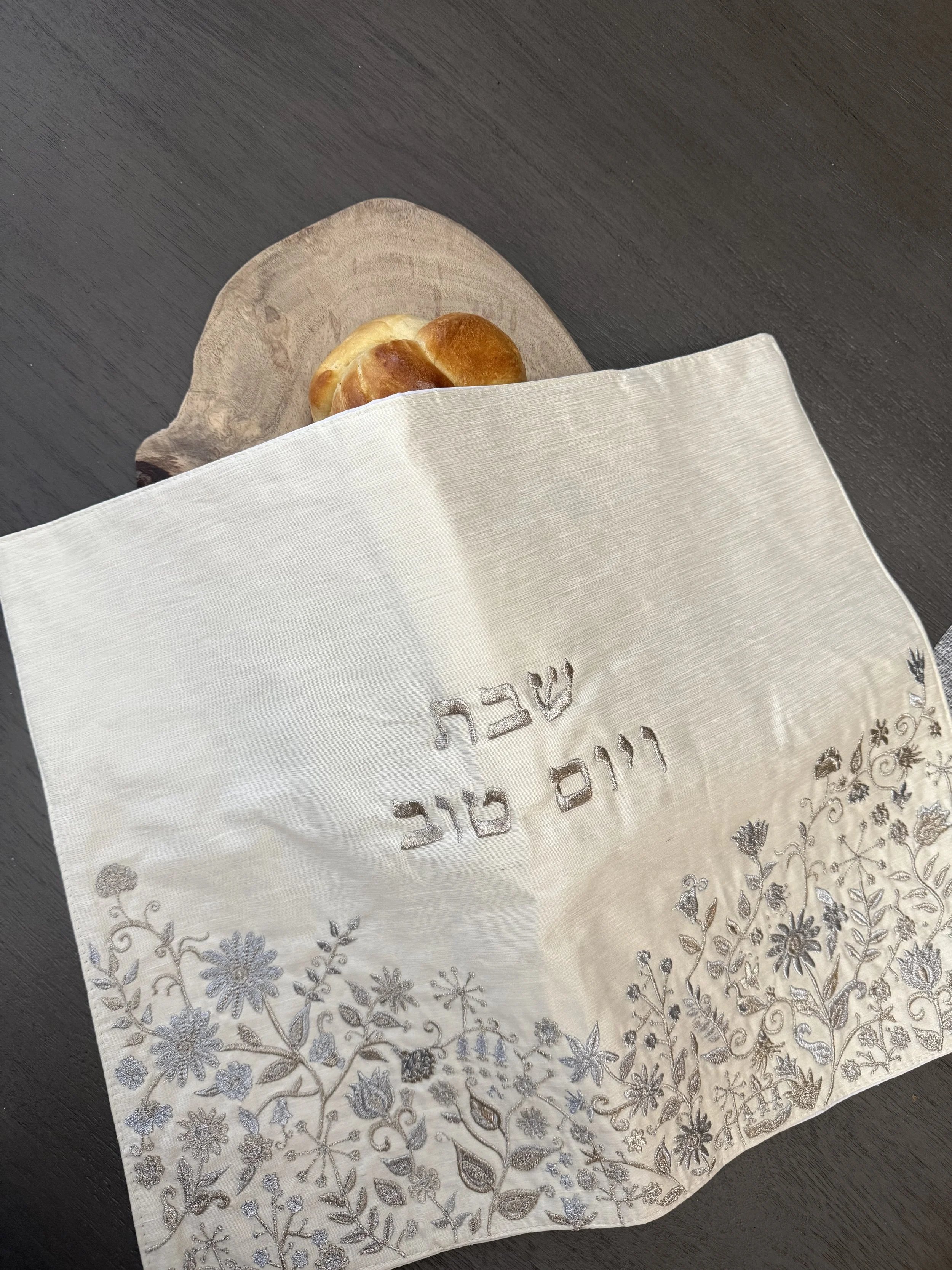 Jokes aside, covering your challah with a beautiful cloth is one of those quiet, poetic Shabbat traditions that’s full of meaning. Some say it’s so the challah doesn’t feel “embarrassed” when the wine gets blessed first. Others see it as a nod to Shabbat herself — our weekly bride — so when we lift the cover, it’s like unveiling her veil to welcome the joy of rest and connection.